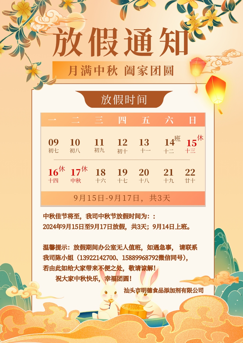 敬請留意 中秋節(jié)放假通知